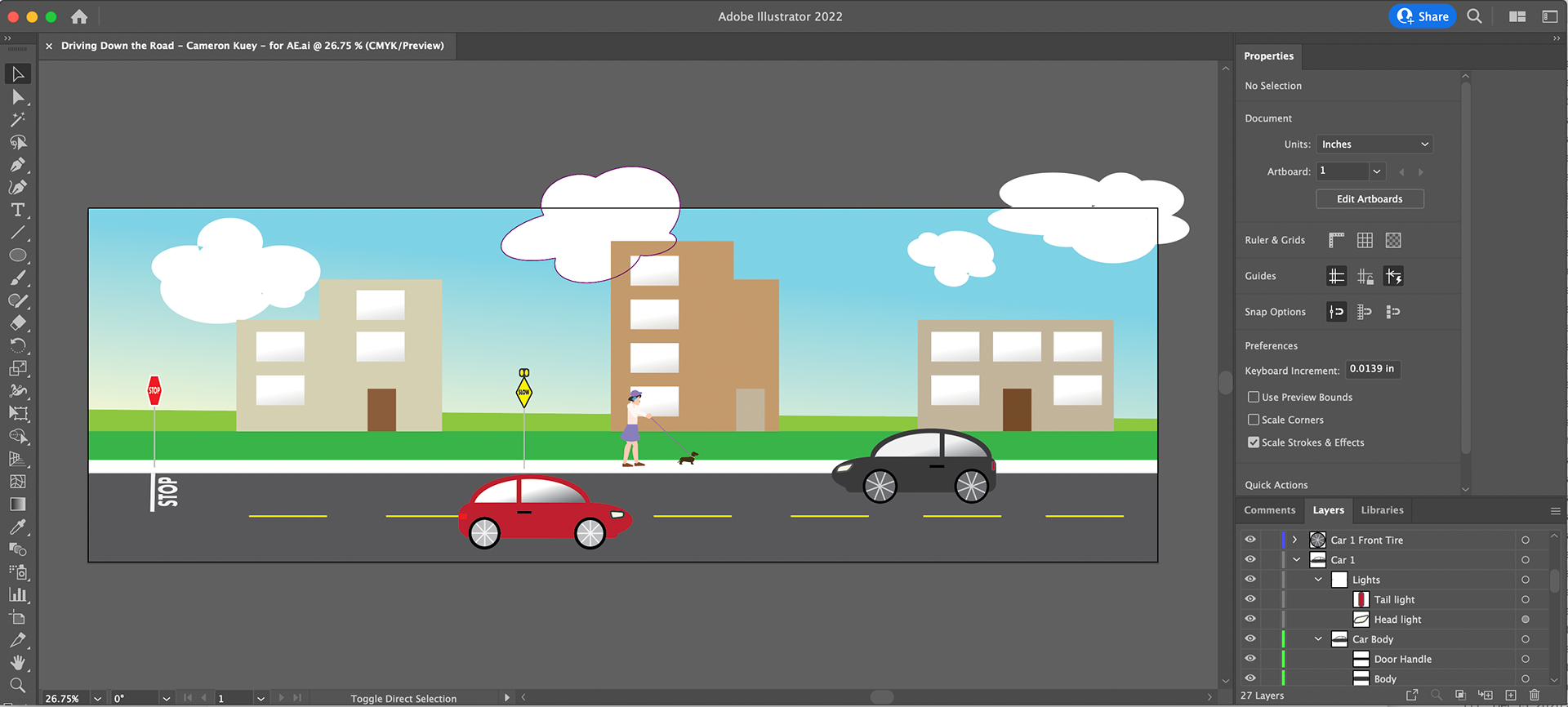 I designed theĀ image (above) using Adobe Illustrator and thenĀ animated the scene using Adobe After Effects (below).